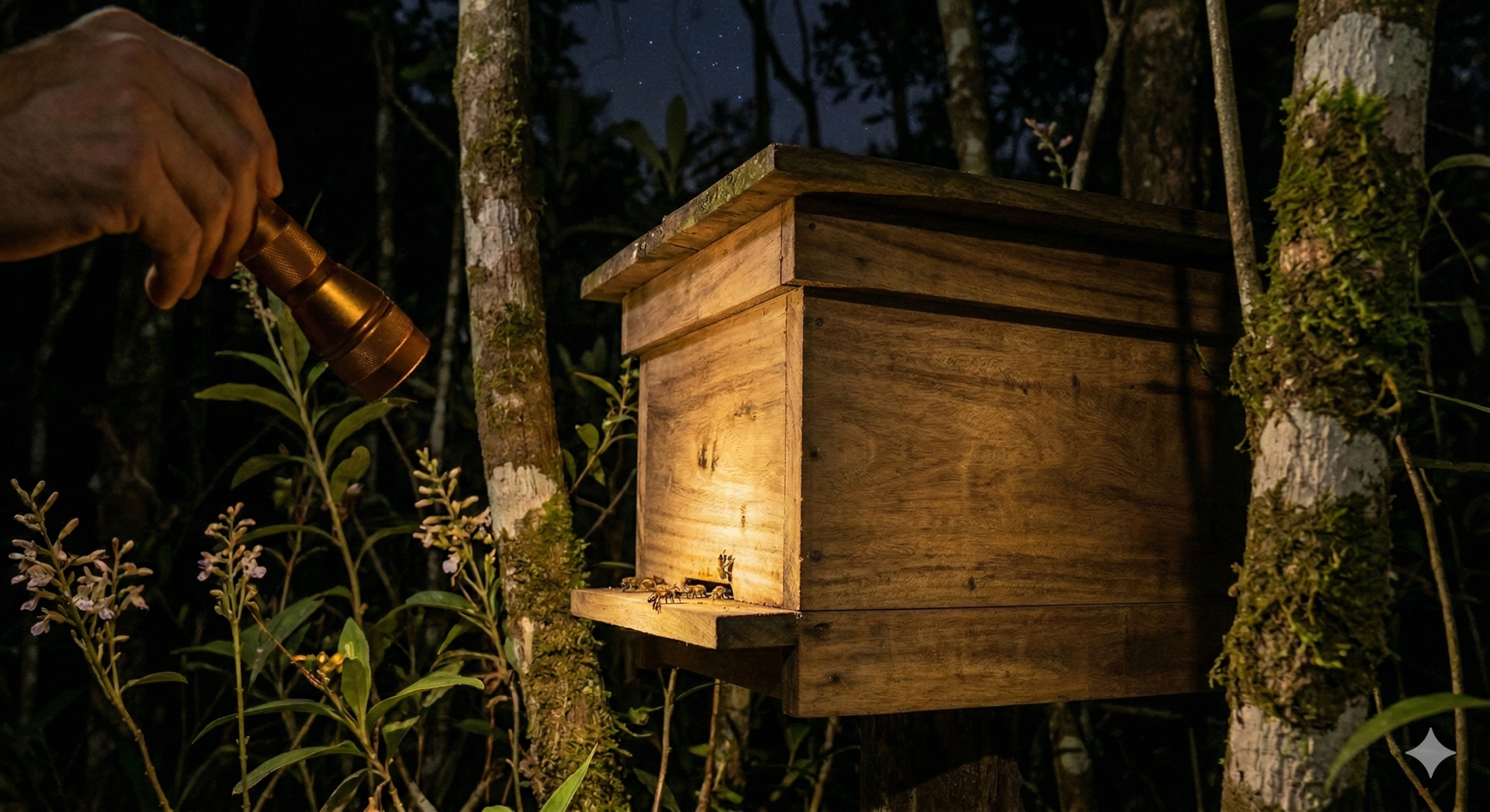 Cuidado com luzes fortes durante a noite sobre as abelhas sem ferrão.
