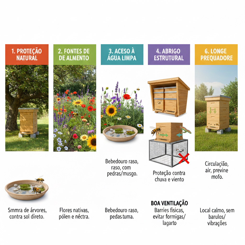 Descubra os 7 itens essenciais para escolher o local perfeito para suas abelhas sem ferrão. Comece do jeito certo e evite erros comuns!